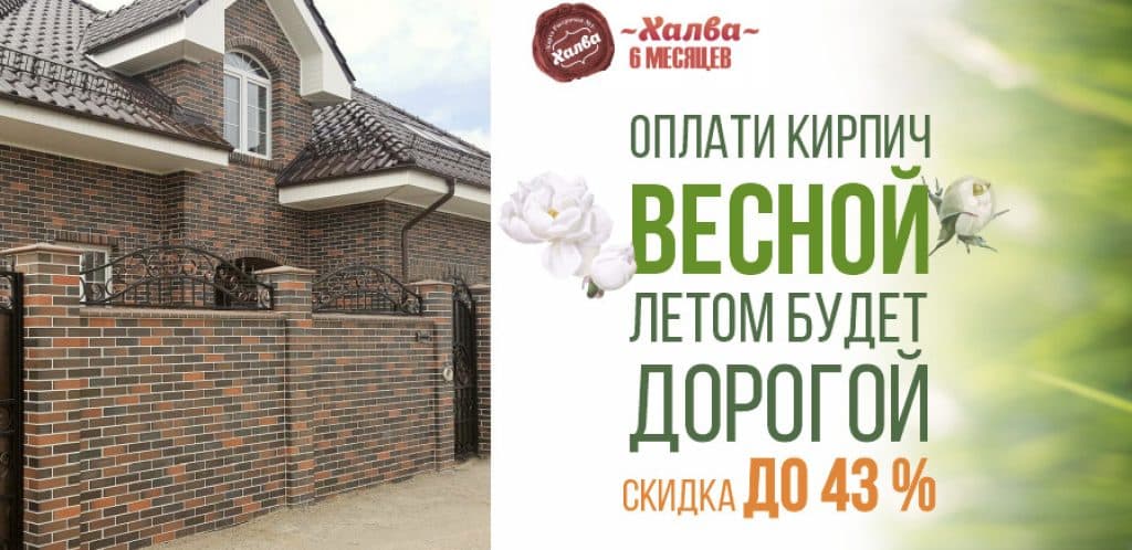 Завод-изготовитель ООО «РуБелЭко» предлагает купить кирпич по сезонной акции от -22% до 43% розничной стоимости.